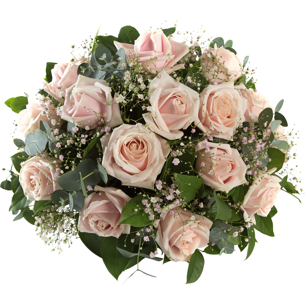 Zacht roze met wit zorgt voor een teder gevoel van dankbaarheid. Vergeet niet uw bloemenkaartje of lint mee te bestellen!
