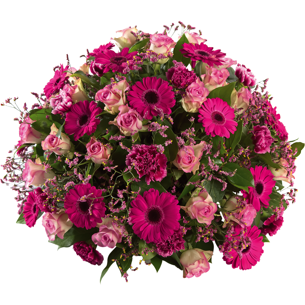 Prachtig roze biedermeier met roos, anjer en gerbera