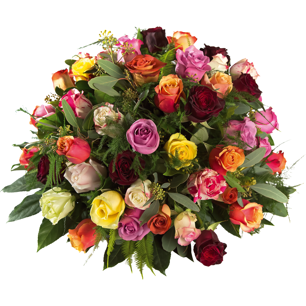 Een kleurrijke sfeer als herinnering aan alle mooie momenten. Vergeet niet uw bloemenkaartje of lint mee te bestellen!