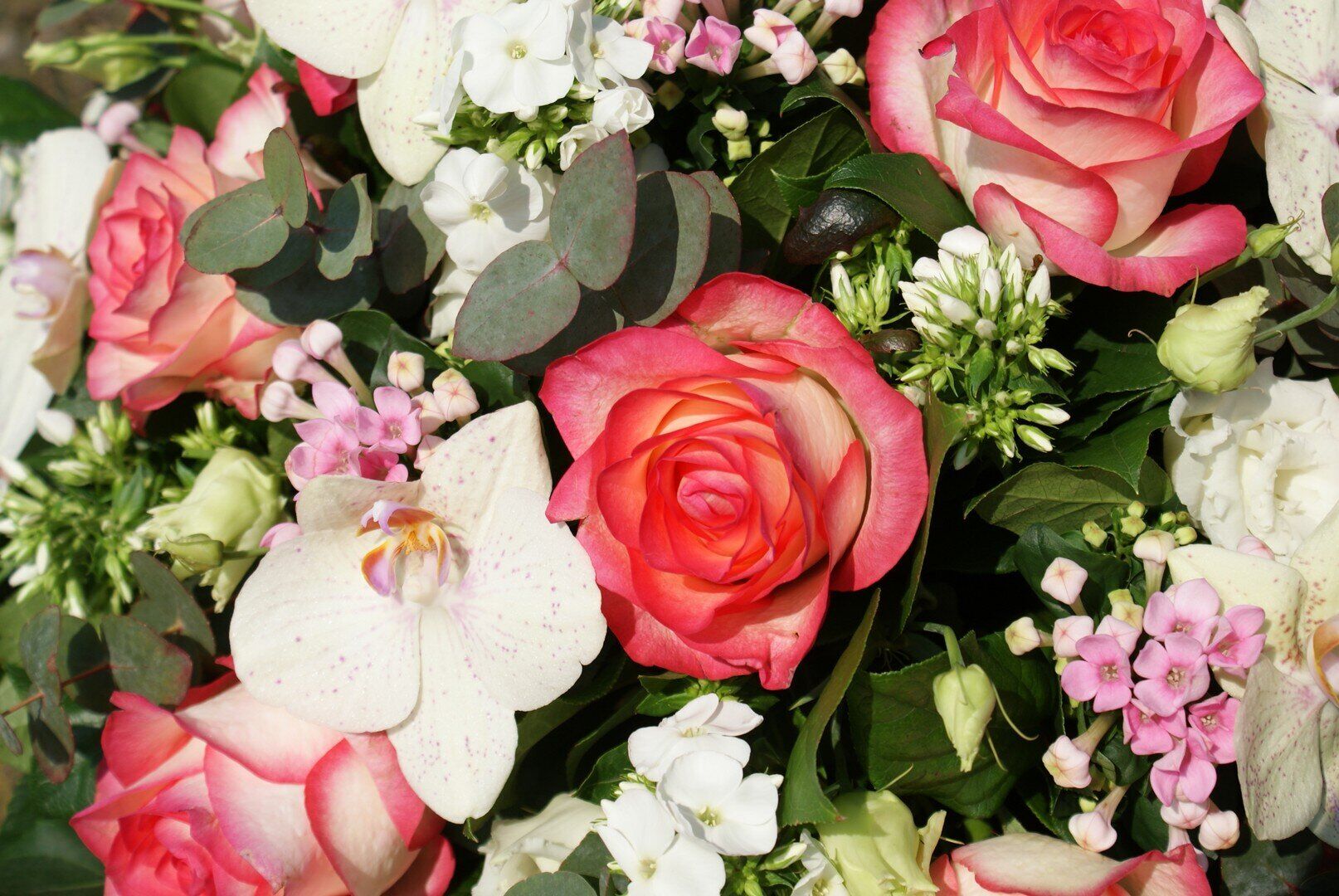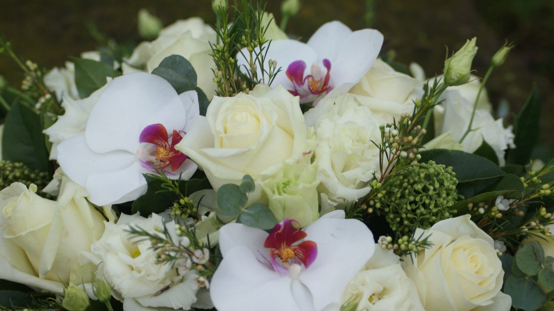 Witte rozen , Lissianthus en phaleanopsis redlips