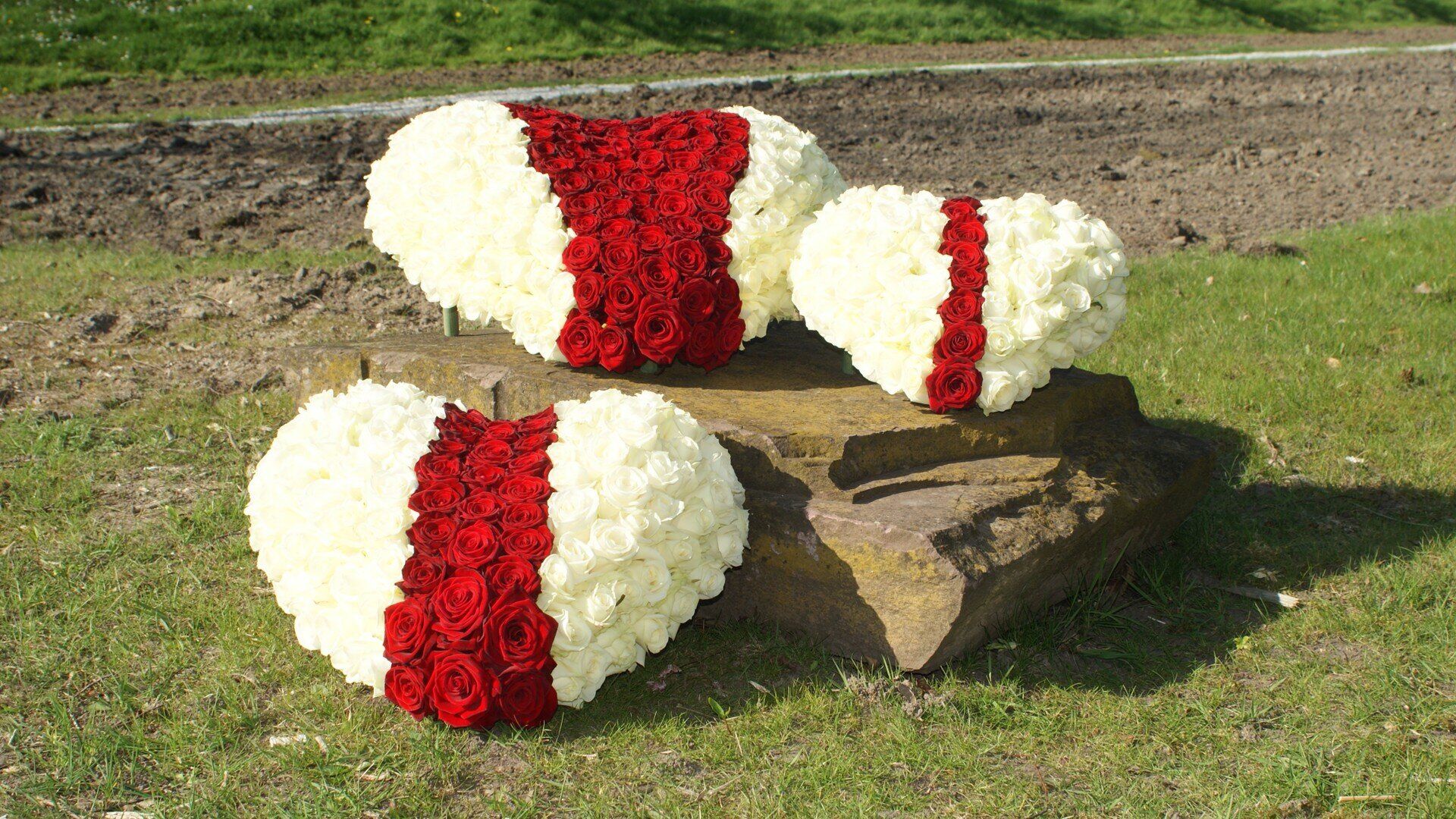 Een hart zoals hij moet zijn ,met echte wangen, waar hij elders met 90 rode rozen word opgestoken, bestaat hij bij ons met meer dan 180 rozen de grootste maat heeft er zelfs meer dan 200.